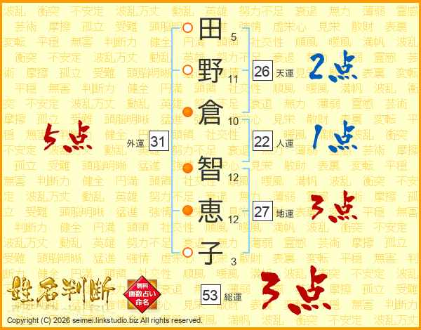 田野倉智恵子さんの天運は26画の2点!