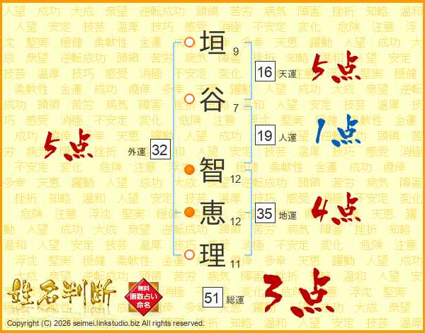 垣谷智恵理さんの外運は32画の5点!