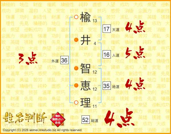 楡井智恵理さんの総運は52画の4点!