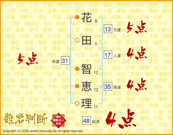 花田智恵理さんの総運は48画の4点!