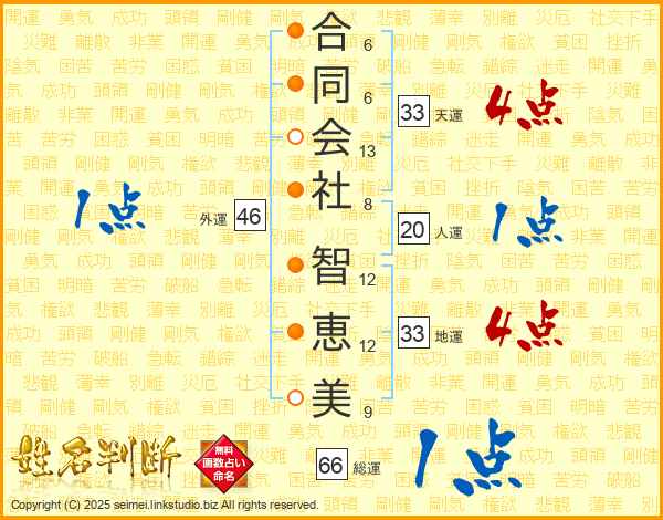 合同会社智恵美さんの総運は66画の1点!