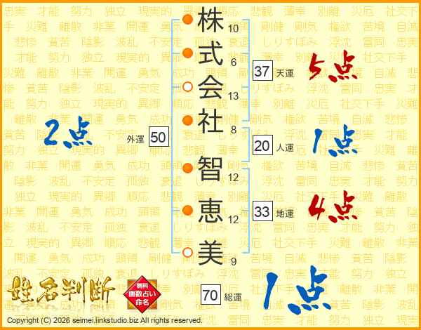 株式会社智恵美さんの総運は70画の1点!