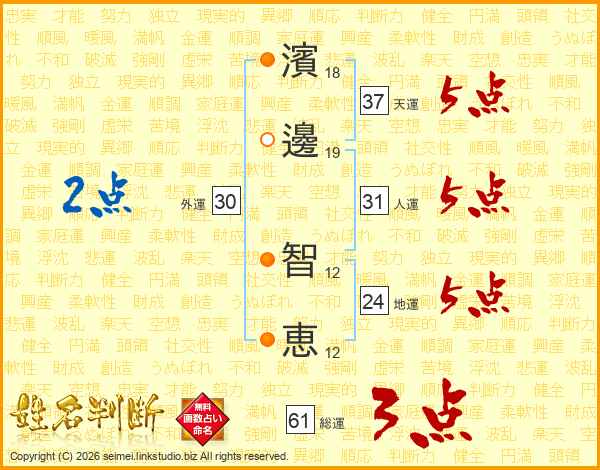 濱(18画)邊(19画) 智(12画)恵(12画)