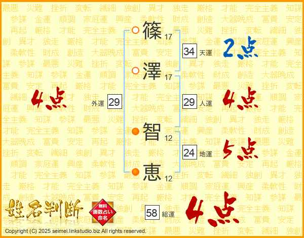 篠(17画)澤(17画) 智(12画)恵(12画)