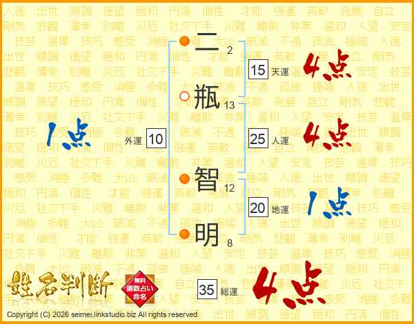 二瓶智明さんの総運は35画の4点!