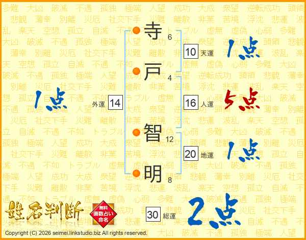 寺(6画)戸(4画) 智(12画)明(8画)