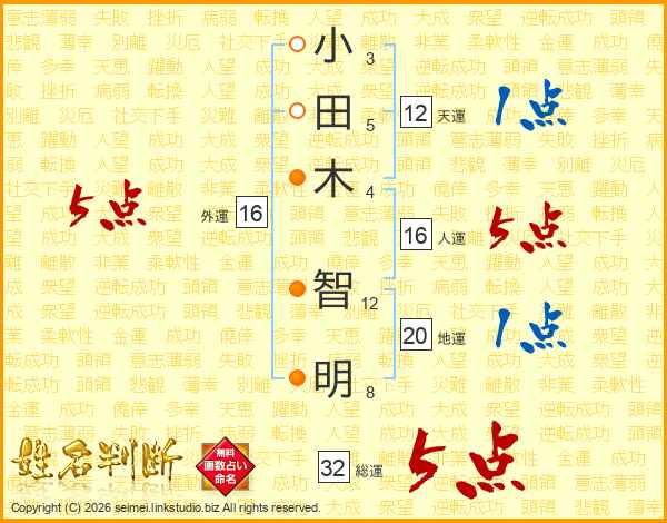 小田木智明さんの総運は32画の5点!