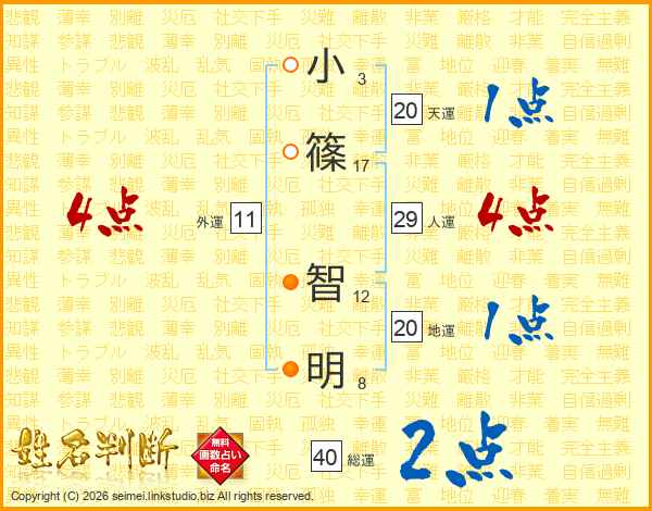 小篠智明さんの人運は29画の4点!