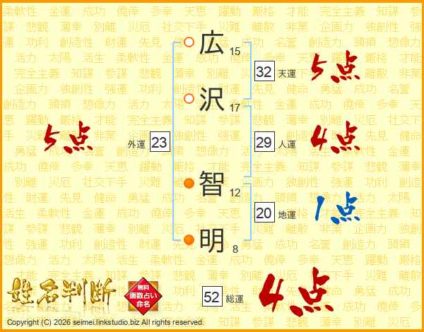広沢智明さんの総運は52画の4点!