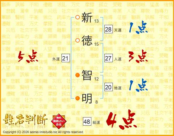 新(13画)徳(15画) 智(12画)明(8画)