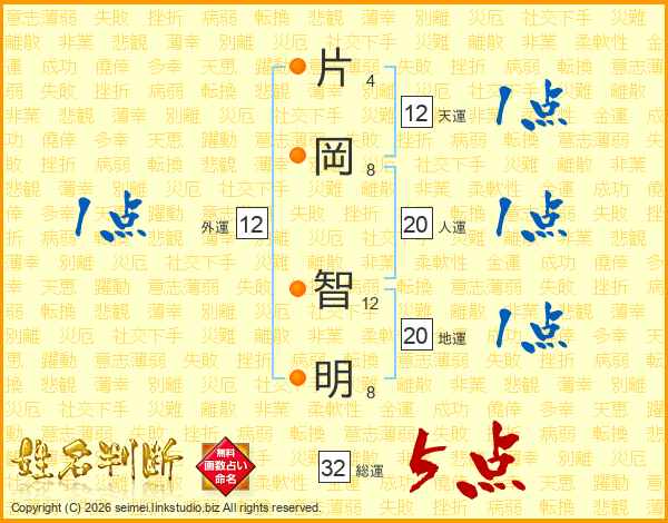 片岡智明さんの人運は20画の1点!