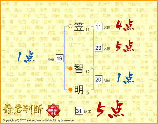 笠智明さんの総運は31画の5点!