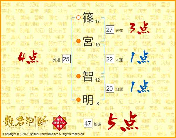 篠宮智明さんの総運は47画の5点!