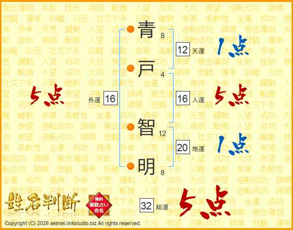 青戸智明さんの総運は32画の5点!