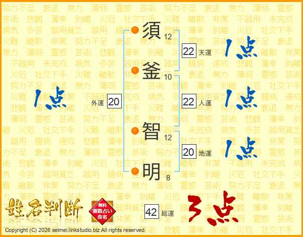須(12画)釜(10画) 智(12画)明(8画)