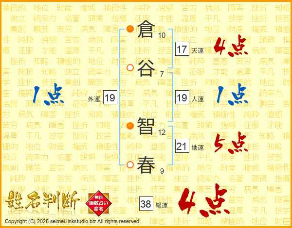 倉谷智春さんの総運は38画の4点!
