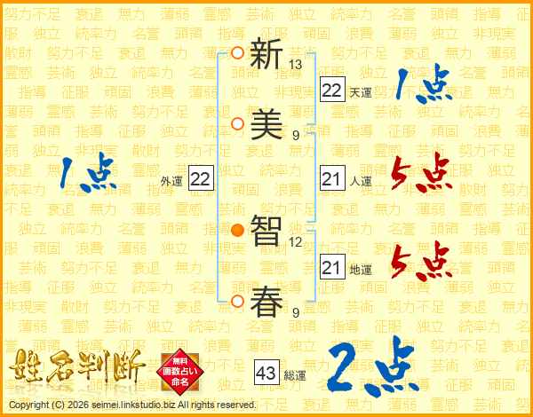 新美智春さんの総運は43画の2点!
