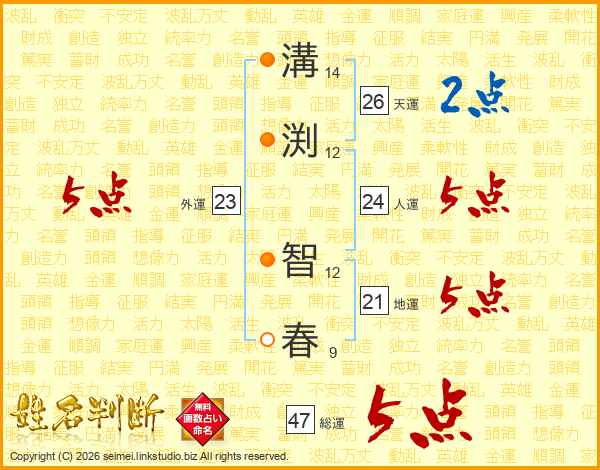溝(14画)渕(12画) 智(12画)春(9画)