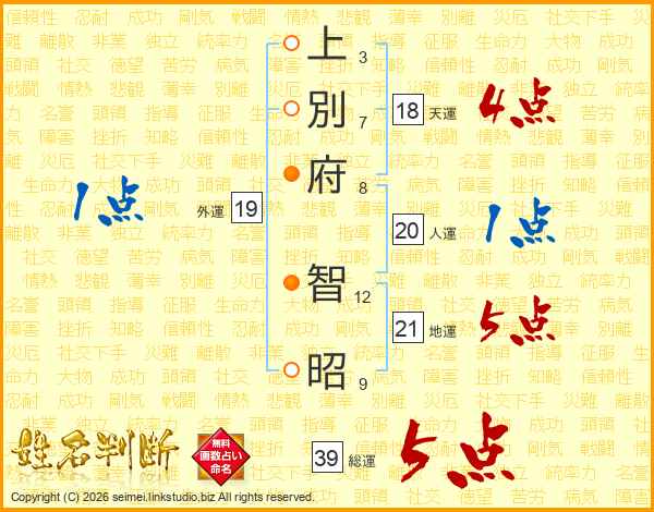上(3画)別(7画)府(8画) 智(12画)昭(9画)