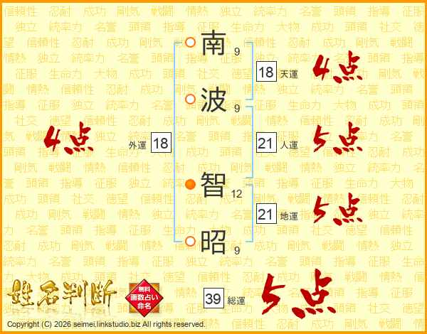 南波智昭さんの総運は39画の5点!