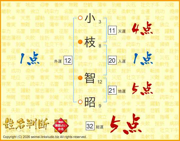 小枝智昭さんの総運は32画の5点!
