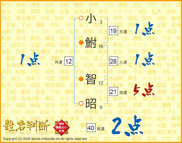 小(3画)鮒(16画) 智(12画)昭(9画)