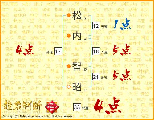 松内智昭さんの総運は33画の4点!