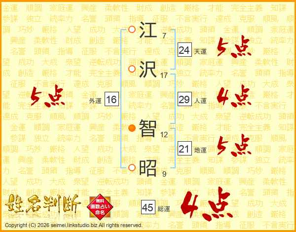 江沢智昭さんの総運は45画の4点!