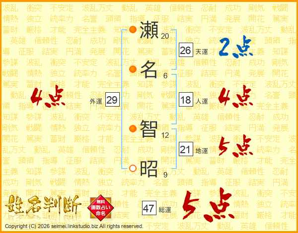 瀬名智昭さんの総運は47画の5点!