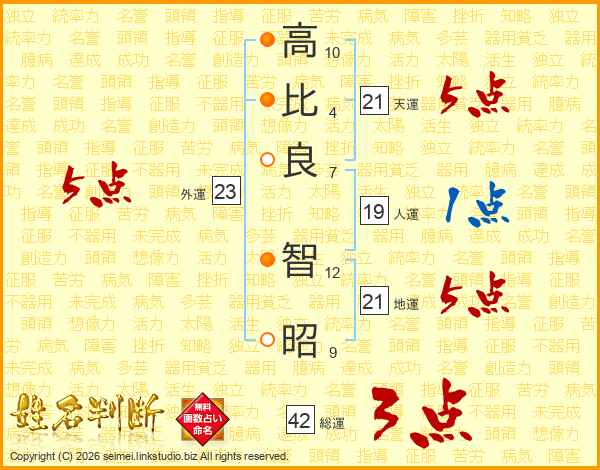 高(10画)比(4画)良(7画) 智(12画)昭(9画)