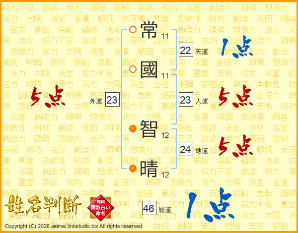常國智晴さんの人運は23画の5点!