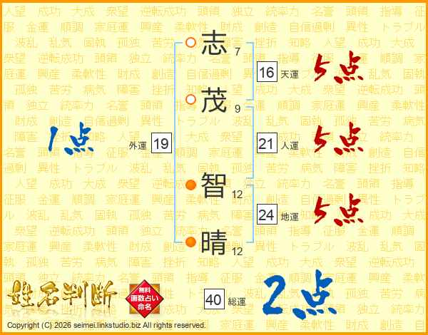 志茂智晴さんの人運は21画の5点!