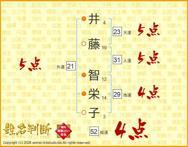 井藤智栄子さんの総運は52画の4点!