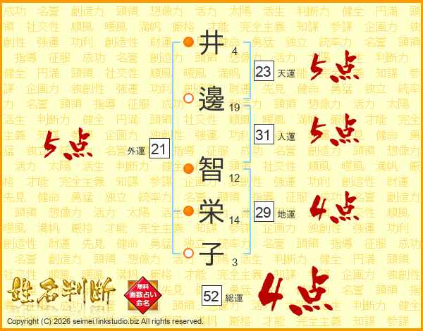 井(4画)邊(19画) 智(12画)栄(14画)子(3画)