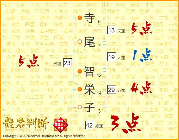 寺尾智栄子さんの外運は23画の5点!