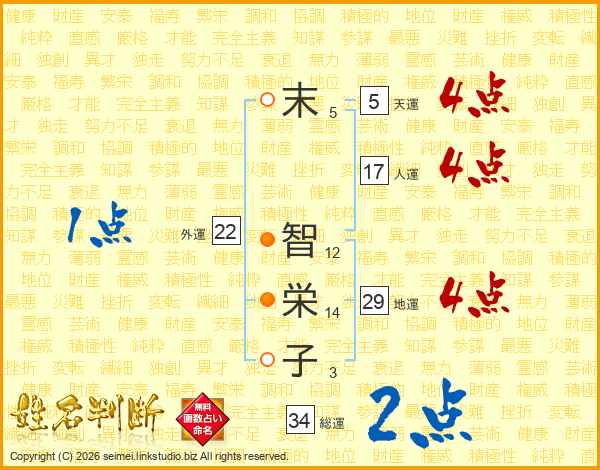 末(5画) 智(12画)栄(14画)子(3画)