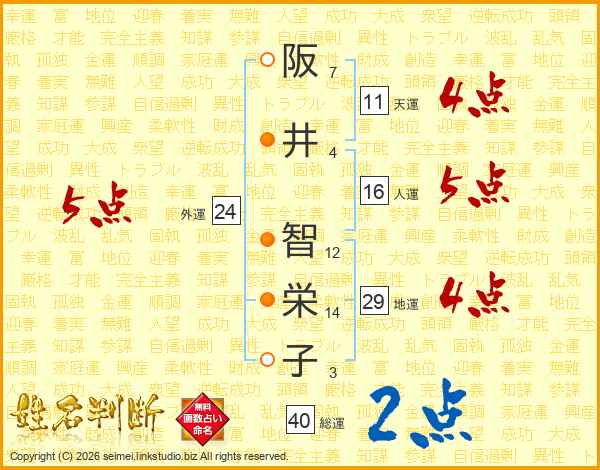 阪井智栄子さんの外運は24画の5点!