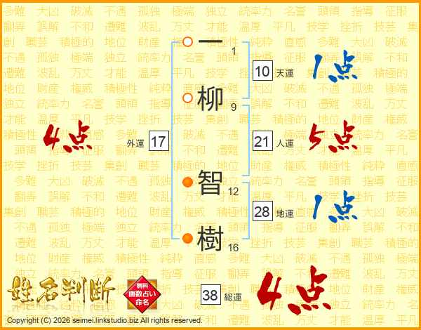 一柳智樹さんの総運は38画の4点!
