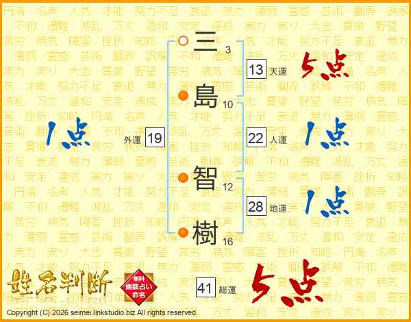 三(3画)島(10画) 智(12画)樹(16画)