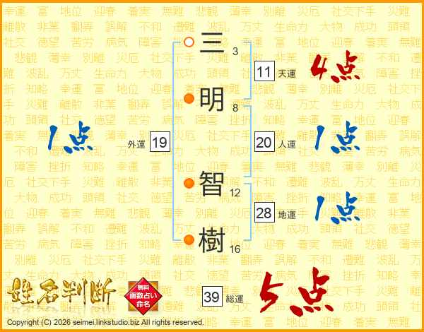 三明智樹さんの総運は39画の5点!