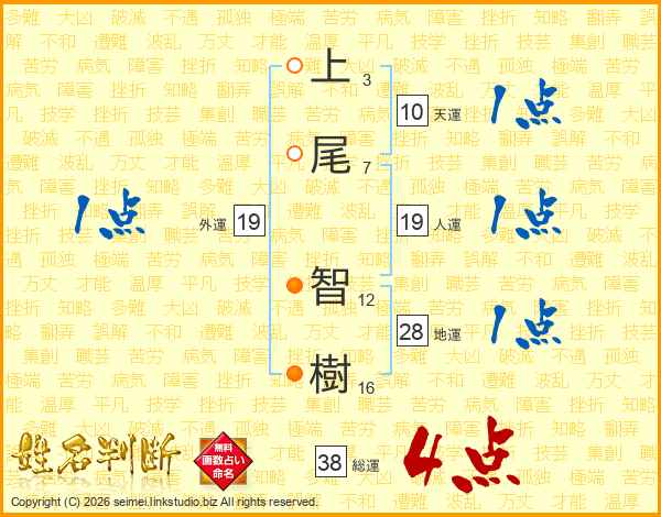 上尾智樹さんの総運は38画の4点!