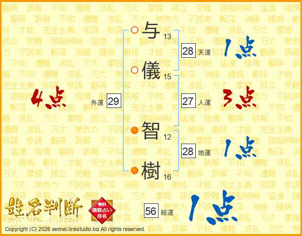 与儀智樹さんの総運は56画の1点!