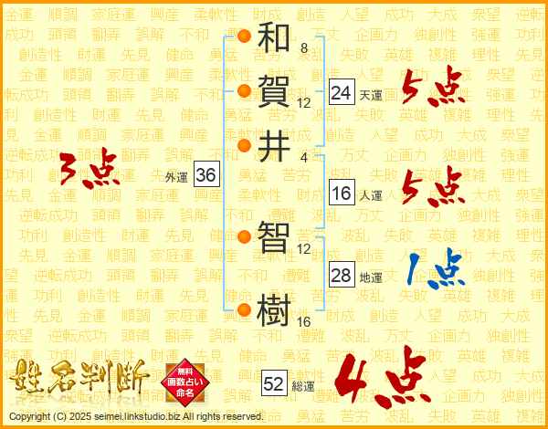 和(8画)賀(12画)井(4画) 智(12画)樹(16画)