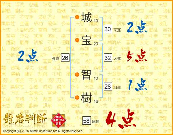 城宝智樹さんの総運は58画の4点!