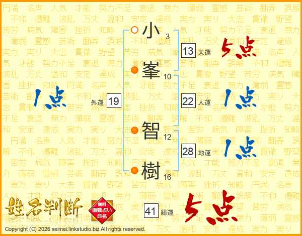小峯智樹さんの総運は41画の5点!