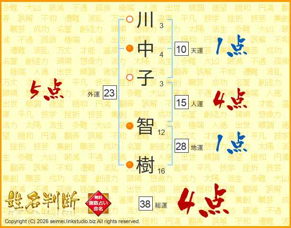 川中子智樹さんの総運は38画の4点!