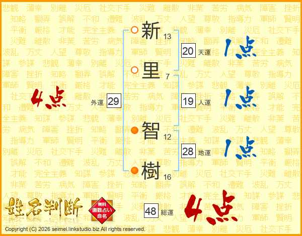 新里智樹さんの総運は48画の4点!