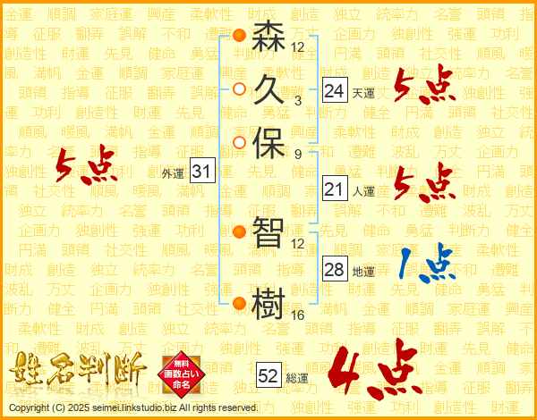 森久保智樹さんの総運は52画の4点!