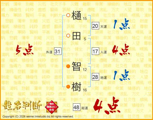 樋田智樹さんの総運は48画の4点!