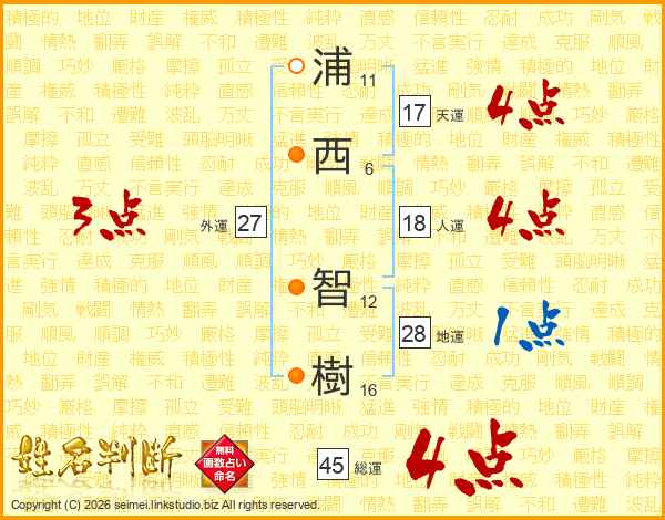 浦西智樹さんの総運は45画の4点!